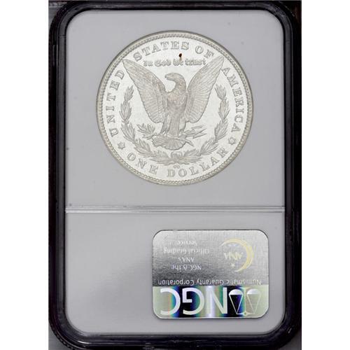 <B>1880-CC<img border='0' src='http://www.heritagecoins.com/images/star.gif' width=10 height=10>$1> 8 Over High 7 MS65 Deep Mirror Prooflike NGC.</B></I> VAM-5. A Top 100 Variety. The 8 Over High 7 feature is undesignated on the NGC holder. This prominently mirrored and essentially untoned Gem has a penetrating strike and a well preserved reverse. The 1880-CC is scarcer in Mint State than its 1881-CC to 1885-CC successors.