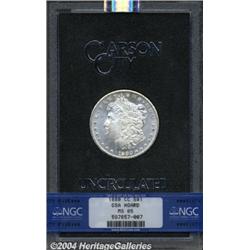 <B>1880-CC<S$1> 8 Over Low 7 MS65 NGC.</B></I> VAM-6. A Top 100 Variety. A nicely struck Gem with only a hint of gold color on the fields. The luster is semi-prooflike, and the reverse in particular is well preserved. A popular VAM due to the clear underdigit 7 within the second 8. <BR><BR><B>Important notice:</B> Heritage usually auctions material at the rate of 200-250 lots per hour. On some occasions eBay Live bid software or the Internet may not be able to keep up with the pace of the auction. We recommend placing a realistic absentee bid now as insurance to avoid disappointment. Occasionally the auctioneer may eliminate or reject an eBay Live bid, and the auctioneer may also reopen a lot after the close of the eBay live bidding (usually because we missed an audience bid), and may reject your bid even if it shows you as the winning bidder. By bidding via eBay Live, you agree that Heritage may award the lot to another bidder at its sole discretion under the circumstances described above or any other reasonable circumstances. Since eBay bids are not shown to us until we open the lot on the floor, we treat those bids just like floor bids. In most cases the floor responds before the eBay bid is presented to us, due to Internet lag time, so for consistency we have made it a policy that floor bids are always considered first over tie eBay live bids. Also please note that all Heritage lots purchased through eBay Live carry a 20% Buyer's Premium. Please make sure you read the Terms and Conditions before you bid. </span></font></tr></table></td></tr></table>