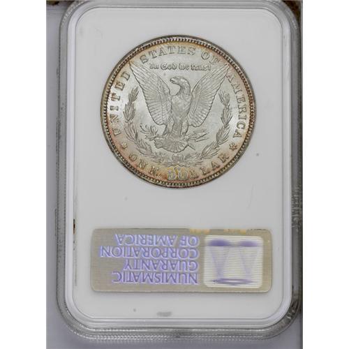 <B>1880-CC<img border='0' src='http://www.heritagecoins.com/images/star.gif' width=10 height=10>$1> 8 Over High 7 MS64 NGC.</B></I> VAM-5. A Top 100 Variety. Clear details of the former 7 are visible in both loops of the second 8 in the date, as well as beneath that digit. There is no other evidence of overdate details. Sharply struck and fully lustrous with slight cameo contrast. Both sides have attractive peripheral gold color.