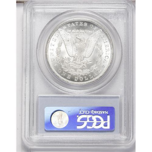 <B>1880-CC<img border='0' src='http://www.heritagecoins.com/images/star.gif' width=10 height=10>$1> MS64 PCGS.</B></I> VAM-3. A dash, presumably the base of a largely effaced 7, lurks beneath the second 8 in the date. Frosty and almost brilliant, this near-Gem has appealing luster, though faint roller marks appear at the hair above the ear, a point of striking weakness.