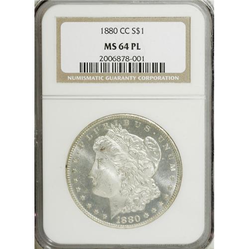 1880-CC S$1 MS64 Prooflike NGC. An exceedingly frosty