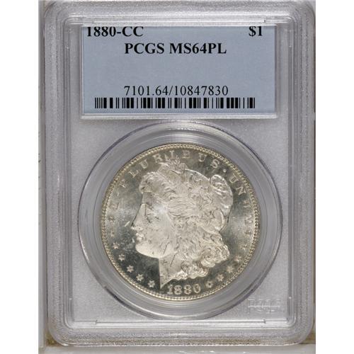 1880-CC S$1 MS64 Prooflike PCGS. Brilliant throughout