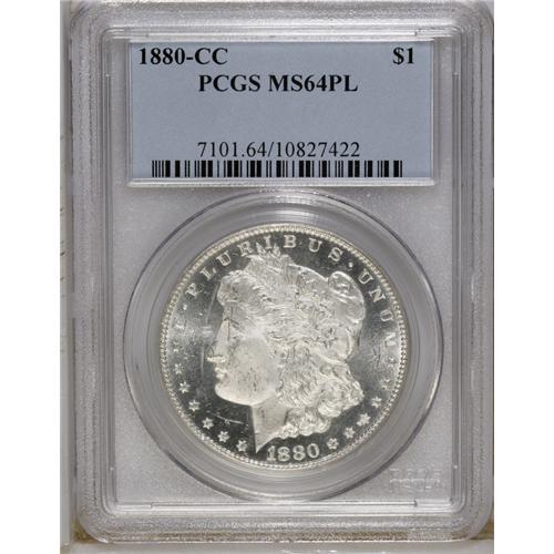 1880-CC S$1 MS64 Prooflike PCGS. Choice and moderately