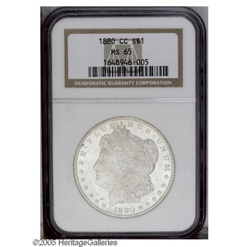 1880-CC S$1 MS65 NGC. This nearly pure white Gem boast 1880-CC[S$1] MS65 NGC.