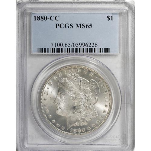 1880-CC S$1 MS65 PCGS. A highly lustrous Gem marked by