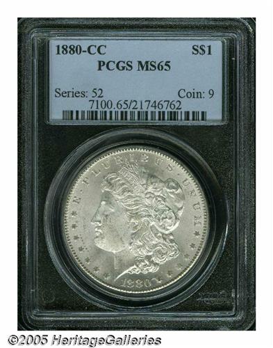 <B>1880-CC<S$1> MS65 PCGS.</B></I> Gentle tan-gray color visits this lustrous and nicely struck CC-mint Gem. Compared with the 1881 to 1885 Carson City issues, a smaller percentage of the mintage emerged from the GSA hoard.