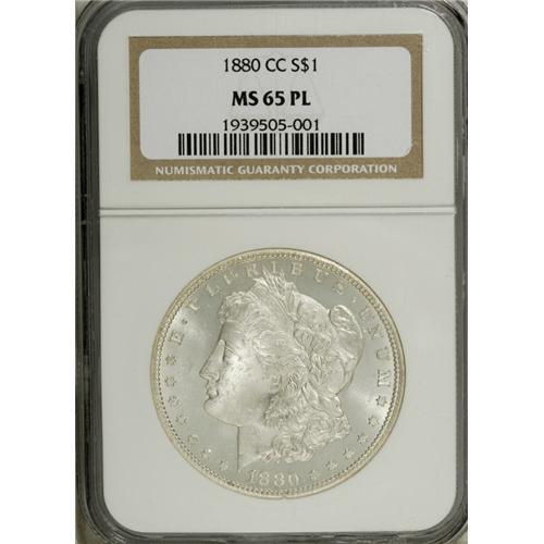 <B>1880-CC S$1 MS65 Prooflike NGC.</B></I> The frosty and suitably struck devices of this Gem contrast with moderately reflective fields that have a hint of golden toning near the rims. An appealing and minimally marked piece.<BR><BR><b>Shipping:</b> Coins & Currency (<a target="_blank" href="http://www.heritageauctions.com/common/shipping.php">view shipping information</a>)