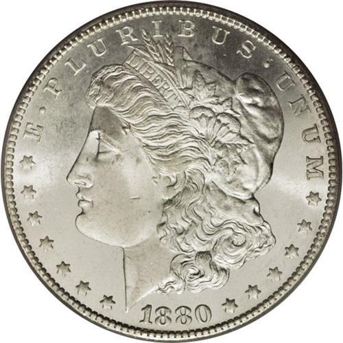 <B>1880-CC S$1 MS66 PCGS.</B></I> This example is a beautiful Premium Gem with frosty silver luster and full mint brilliance. The fields retain hints of prooflike reflectivity, producing a lovely cameo appearance. Morgan dollars from the Carson City Mint, regardless of date, are held in high esteem by collectors today. Perhaps it is the charm and mystery of the old west.<BR><BR><b>Shipping:</b> Coins & Currency (<a target="_blank" href="http://www.heritageauctions.com/common/shipping.php">view shipping information</a>)