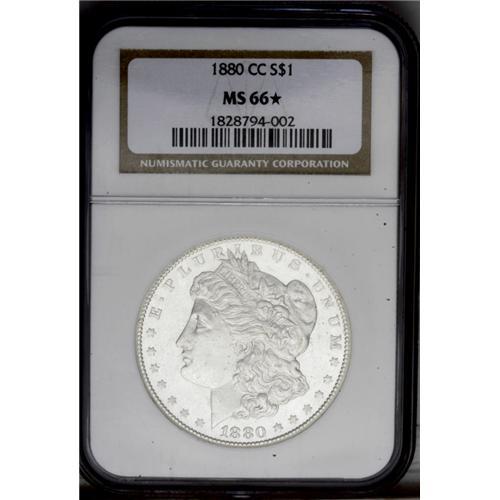 <B>1880-CC<img border='0' src='http://www.heritagecoins.com/images/star.gif' width=10 height=10>$1> MS66 <img border='0' src='http://www.heritagecoins.com/images/star.gif' width=10 height=10> NGC.</B></I> An untoned and exceptionally clean example of this popular Carson City issue. Superior for the grade with the coveted <img border='0' src='http://www.heritagecoins.com/images/star.gif' width=10 height=10> rating by NGC. <BR><BR><B>Important notice:</B> Heritage usually auctions material at the rate of 200-250 lots per hour. On some occasions eBay Live bid software or the Internet may not be able to keep up with the pace of the auction. We recommend placing a realistic absentee bid now as insurance to avoid disappointment. Occasionally the auctioneer may eliminate or reject an eBay Live bid, and the auctioneer may also reopen a lot after the close of the eBay live bidding (usually because we missed an audience bid), and may reject your bid even if it shows you as the winning bidder. By bidding via eBay Live, you agree that Heritage may award the lot to another bidder at its sole discretion under the circumstances described above or any other reasonable circumstances. Since eBay bids are not shown to us until we open the lot on the floor, we treat those bids just like floor bids. In most cases the floor responds before the eBay bid is presented to us, due to Internet lag time, so for consistency we have made it a policy that floor bids are always considered first over tie eBay live bids. Also please note that all Heritage lots purchased through eBay Live carry a 20% Buyer's Premium. Please make sure you read the Terms and Conditions before you bid. This lot is being auctioned in conjunction with a live floor auction by Heritage Galleries & Auctioneers. All final auction and invoice information will be supplied by Heritage Galleries & Auctioneers, and all other information should be considered preliminary. Lot:3263 <BR><BR><B>Winning Notification and Billing:</B> After the FINAL session in this auction is complete, Heritage will send e-mail and snail mail invoices. This process normally takes several days. All final auction and invoice information will be supplied by Heritage Galleries & Auctioneers, and all other information should be considered preliminary. <BR><BR>This auction will be conducted on a live auction floor and over the Internet through eBay Live. If you choose to place an absentee bid, please take a moment to <font color='#0000ff'><u><a href='http://pages.ebay.com/liveauctions/help/before/laabsentee.html'>learn how eBay Live absentee bidding works</a></u></font><font color='#000000'>