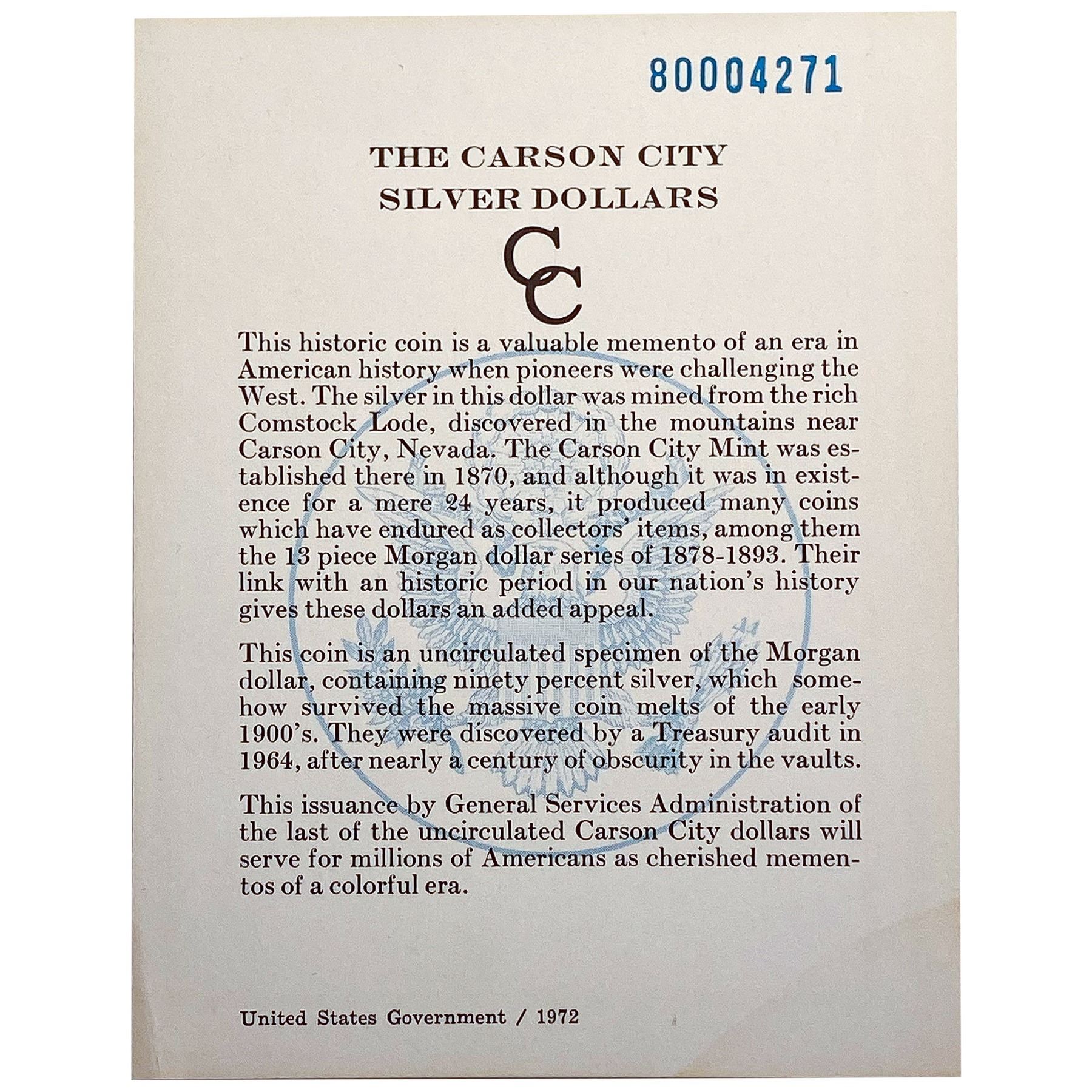 1880 Carson City Silver Morgan Dollar Uncirculated