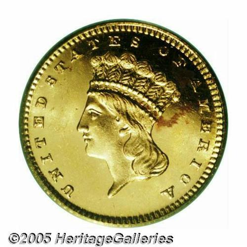 <B>1880<G$1> MS65 PCGS.</B></I> This deeply mirrored prooflike Gem has rich yellow-gold color with hints of red toning. The fields and devices contrast nicely and provide excellent eye appeal. The reverse is covered with numerous fine die striations and polishing lines, all as made.