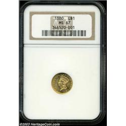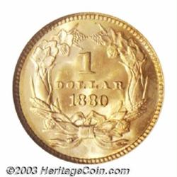 <table><tr><td><TABLE cellSpacing=0 cellPadding=0 width="100%" bgColor=#000000 border=0><TBODY> <TR><TD width="100%"><TABLE cellSpacing=1 cellPadding=3 width="100%" border=0><TBODY><TR><TD width="100%" bgColor=#79735c><FONT face=arial color=#ffffff size=3><B>Description</B> </FONT></TD></TR><TR><TD width="100%" bgColor=#ffffff><FONT face=arial size=2><B>1880 G$1 MS67 NGC.</B></I> With its combination of MS67 quality and the scarcity suggested by an original mintage of only 1,600 pieces, this is sure to be a very popular item with both date and type collectors. The surfaces are bright and flashy with strong semi-prooflike fields. The devices have a chiseled appearance that tells of the coin's complete striking definition. One tiny planchet indentation is mentioned in the left obverse field near the IT of UNITED.<BR><I>From the Holman Family Collection.</B></I> </FONT></TD></TR></TBODY></TABLE></TD></TR></TBODY></TABLE><BR><A name=PricesRealized></A><TABLE cellSpacing=0 cellPadding=0 width="100%" bgColor=#000000 border=0><TBODY><TR><TD width="100%"><TABLE cellSpacing=1 cellPadding=3 width="100%" border=0><TBODY><TR><TD width="100%" bgColor=#79735c><A name=PR><FONT face=arial color=#ffffff size=3><B>Previous Prices from Heritage Auctions</B> </FONT></A></TD></TR><TR><TD bgColor=#f6f6ed><TABLE cellSpacing=0 cellPadding=0 width="100%" border=1><TBODY><TR><TD align=middle width="33%"><B>Date</B></TD><TD align=middle width="33%"><B>Service</B></TD><TD align=middle width="33%"><B>Price</B></TD></TR><TR bgColor=whitesmoke><TD width="33%"><B>07/31/2001</B></TD><TD width="33%">PCGS</TD><TD width="33%">$3,300.00</TD></TR><TR bgColor=whitesmoke><TD width="33%"><B>01/11/2003</B></TD><TD width="33%">PCGS</TD><TD width="33%">$4,140.00</TD></TR><TR bgColor=whitesmoke><TD width="33%"><B>10/06/2000</B></TD><TD width="33%">PCGS</TD><TD width="33%">$4,427.50</TD></TR><TR bgColor=whitesmoke><TD width="33%"><B>02/11/2000</B></TD><TD width="33%">PCGS</TD><TD width="33%">$5,750.00</TD></TR><TR bgColor=whitesmoke><TD width="33%"><B>03/04/1995</B></TD><TD width="33%">PCGS</TD><TD width="33%">$4,400.00</TD></TR><TR bgColor=whitesmoke><TD width="33%"><B>05/22/1993</B></TD><TD width="33%">PCGS</TD><TD width="33%">$5,280.00</TD></TR><TR bgColor=whitesmoke><TD width="33%"><B>04/02/1993</B></TD><TD width="33%">PCGS</TD><TD width="33%">$4,840.00</TD></TR><TR bgColor=whitesmoke><TD width="33%"><B>11/01/1999</B></TD><TD width="33%">PCGS</TD><TD width="33%">$4,675.00</TD></TR><TR bgColor=whitesmoke><TD width="33%"><B>02/01/1999</B></TD><TD width="33%">PCGS</TD><TD width="33%">$4,290.00</TD></TR><TR bgColor=whitesmoke><TD width="33%"><B>08/01/1999</B></TD><TD width="33%">PCGS</TD><TD width="33%">$4,140.00</TD></TR><TR bgColor=whitesmoke><TD width="33%"><B>01/01/2001</B></TD><TD width="33%">PCGS</TD><TD width="33%">$2,990.00</TD></TR><TR bgColor=whitesmoke><TD width="33%"><B>10/26/2000</B></TD><TD width="33%">NGC</TD><TD width="33%">$2,990.00</TD></TR><TR bgColor=whitesmoke><TD width="33%"><B>08/01/1995</B></TD><TD width="33%">PCGS</TD><TD width="33%">$5,775.00</TD></TR><TR bgColor=whitesmoke><TD width="33%"><B>01/01/1996</B></TD><TD width="33%">PCGS</TD><TD width="33%">$5,280.00</TD></TR></TBODY></TABLE></TD></TR><TR><TD bgColor=#ffffff><FONT face=arial size=1 ?>PLEASE NOTE: All prices realized reflect the final hammer price PLUS the buyer's premium in auctions that charge a buyer's premium. Each item has a notation at the top of the listing indicating whether that lot included a buyer's premium. Example: A item that sells with a final hammer price of $100 and a 20% buyer's premium will display with a price realized of $120. All information listed is intended to be as accurate as possible, but errors are possible. Please use this guide carefully and inform us of any inaccuracies. </FONT></TD></TR></TBODY></TABLE></TD></TR></TBODY></TABLE><BR><TABLE cellSpacing=0 cellPadding=0 width="100%" bgColor=#000000 border=0><TBODY><TR><TD width="100%"><TABLE cellSpacing=1 cellPadding=3 width="100%" border=0><TBODY><TR><TD width="100%" bgColor=#79735c colSpan=6><FONT face=arial color=#ffffff size=3><B>Price Guide*</B> </FONT></TD></TR><TR bgColor=#f6f6ed><TD align=middle><B>Grade</B> </TD><TD align=middle><B>Coin World<BR>(Trends)</B> </TD><TD align=middle><B>Numismedia<BR>Retail</B> </TD><TD align=middle><B>Numismedia<BR>Wholesale</B> </TD><TD align=middle><B>Coin<BR>Universe</B> </TD><TD align=middle><B>Heritage<BR>Value Index</B> </TD></TR><TR bgColor=#ffffff><TD align=middle>66</TD><TD align=right>$3,150.00</TD><TD align=right>---</TD><TD align=right>$2,155.00</TD><TD align=right>$2,500.00</TD><TD align=right>$1,855.00</TD></TR><TR style="FONT-WEIGHT: bold" bgColor=#cccfdd><TD align=middle>67</TD><TD align=right>---</TD><TD align=right>---</TD><TD align=right>$3,575.00</TD><TD align=right>$4,650.00</TD><TD align=right>$3,443.00</TD></TR><TR bgColor=#ffffff><TD align=middle>68</TD><TD align=right>---</TD><TD align=right>---</TD><TD align=right>$8,375.00</TD><TD align=right>$12,500.00</TD><TD align=right>$7,375.00</TD></TR><TR bgColor=#ffffff><TD colSpan=6><FONT size=1>*All information listed is intended to be as accurate as possible, but errors are possible. No item may be returned or refused based on this information which is provided as a service to our customers. You should contact each pricing source directly to determine the accuracy of this information. </FONT></TD></TR></TBODY></TABLE></TD></TR></TBODY></TABLE><BR><TABLE cellSpacing=0 cellPadding=0 width="100%" bgColor=#000000 border=0><TBODY><TR><TD width="100%"><TABLE cellSpacing=1 cellPadding=3 width="100%" border=0><TBODY><TR><TD width="100%" bgColor=#79735c><FONT face=arial color=#ffffff size=3><B>Population Guide</B> </FONT></TD></TR><TR bgColor=#ffffff><TD align=middle><!-- Begin Output of Population Grid--><TABLE cellSpacing=0 cellPadding=0 width="100%" border=0><TBODY><TR><TD vAlign=center><TABLE cellSpacing=0 width="100%" border=1 cellsadding="3"><TBODY><TR><TD vAlig