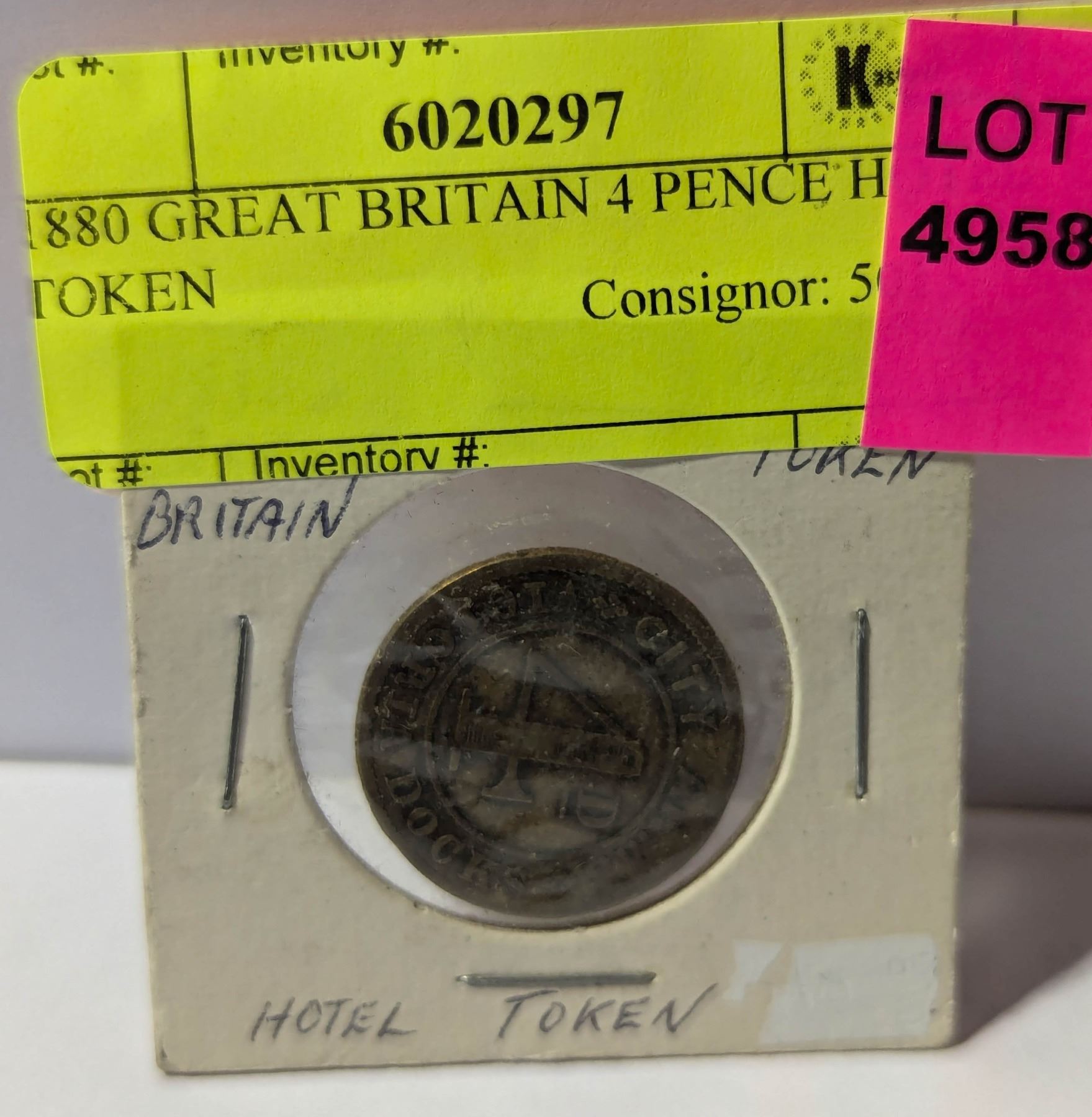 1880 GREAT BRITAIN 4 PENCE HOTEL TOKEN