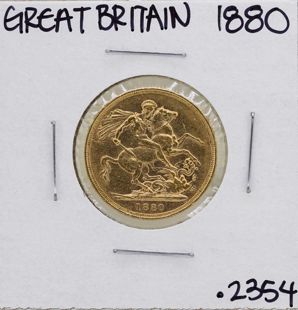 One 1880 Great Britain Queen Victoria Sovereign Gold Coin.
