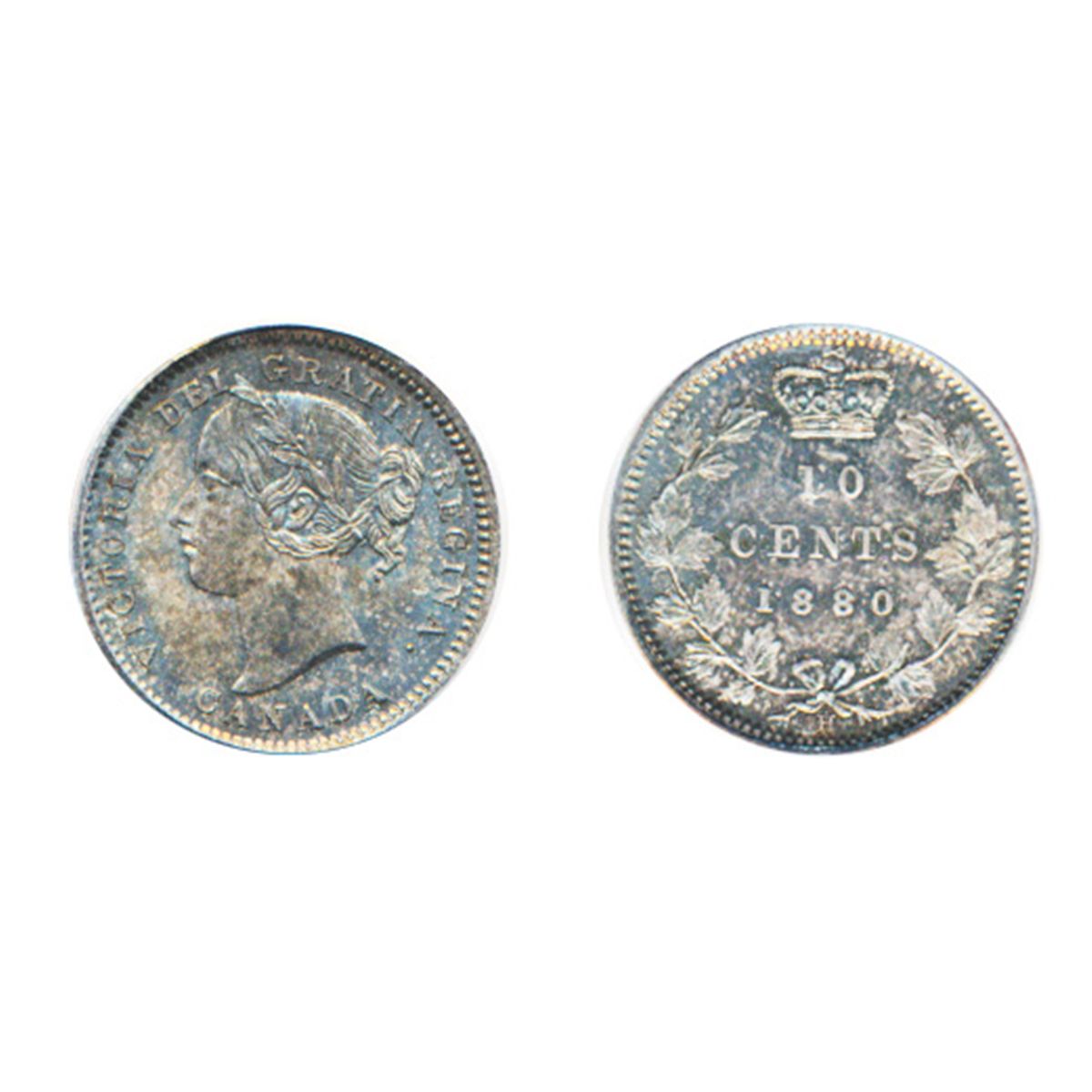 1880-H. Obverse port. #1. PCGS graded Mint State-65. Medium heavy iridescent toning over full deep luster. A strongly struck Gem, with very good ‘eye appeal’.