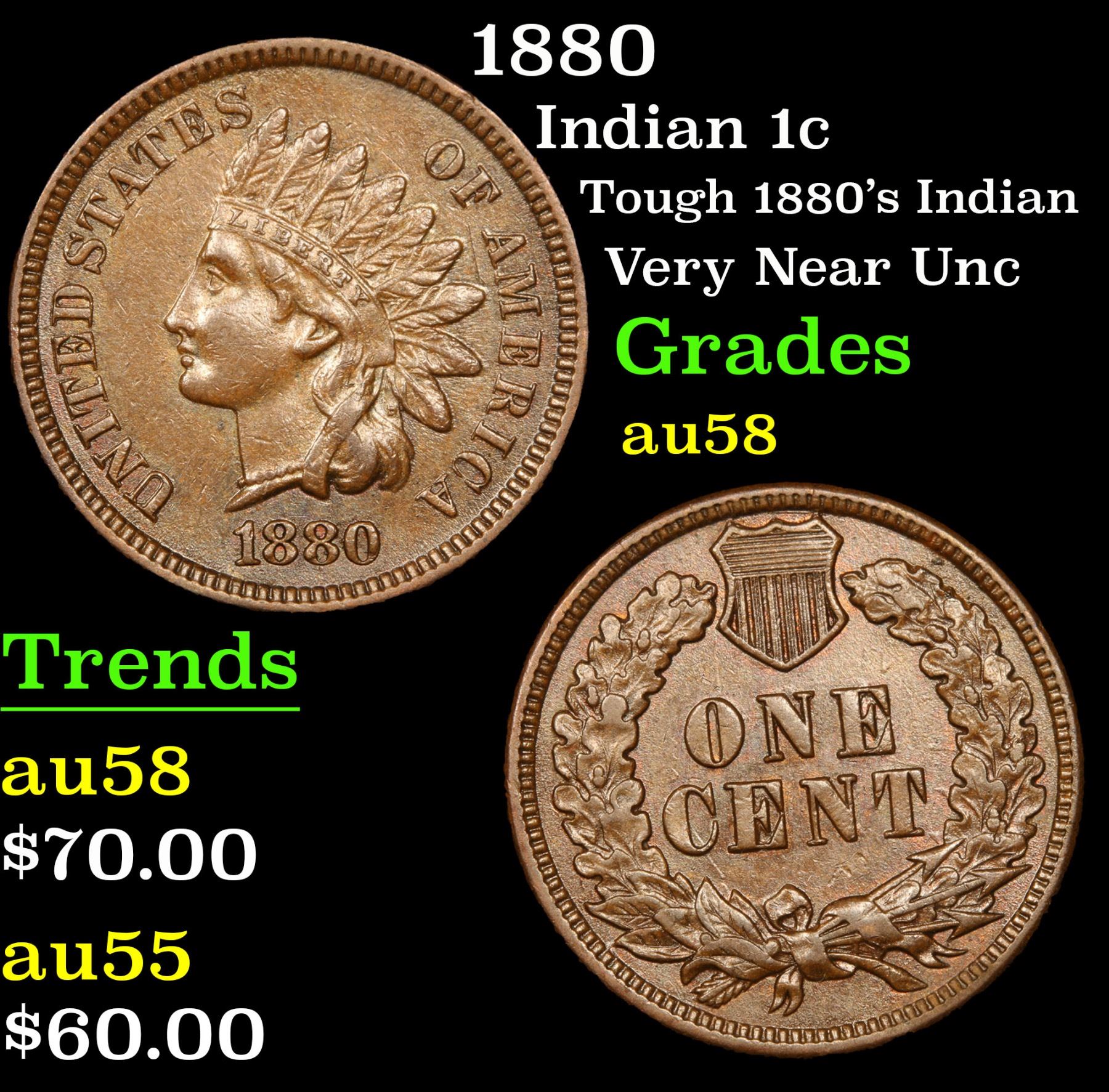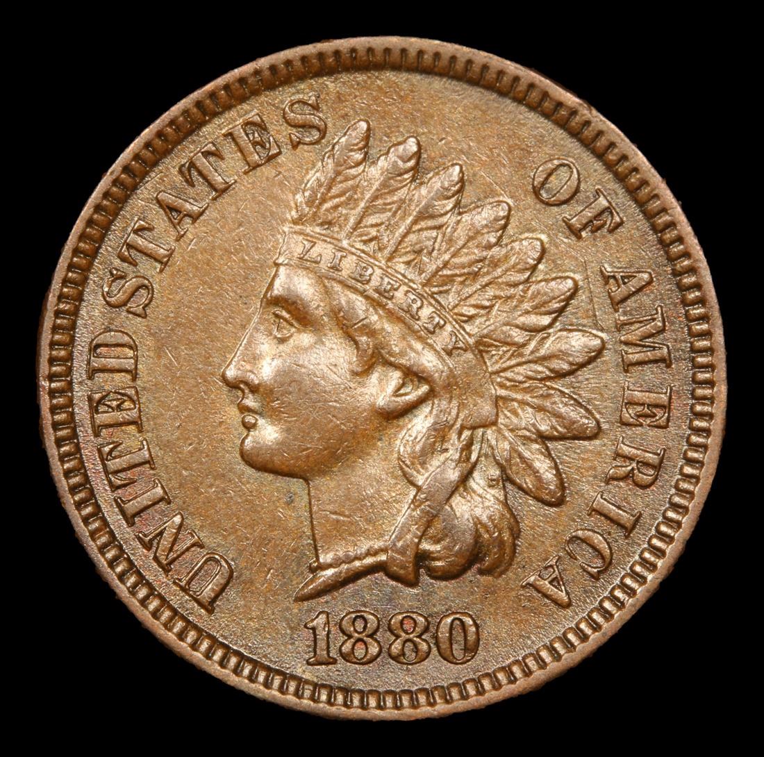 1880 Tough 1880's Indian Very Near Unc Indian Cent 1c Grades Choice AU/BU Slider.