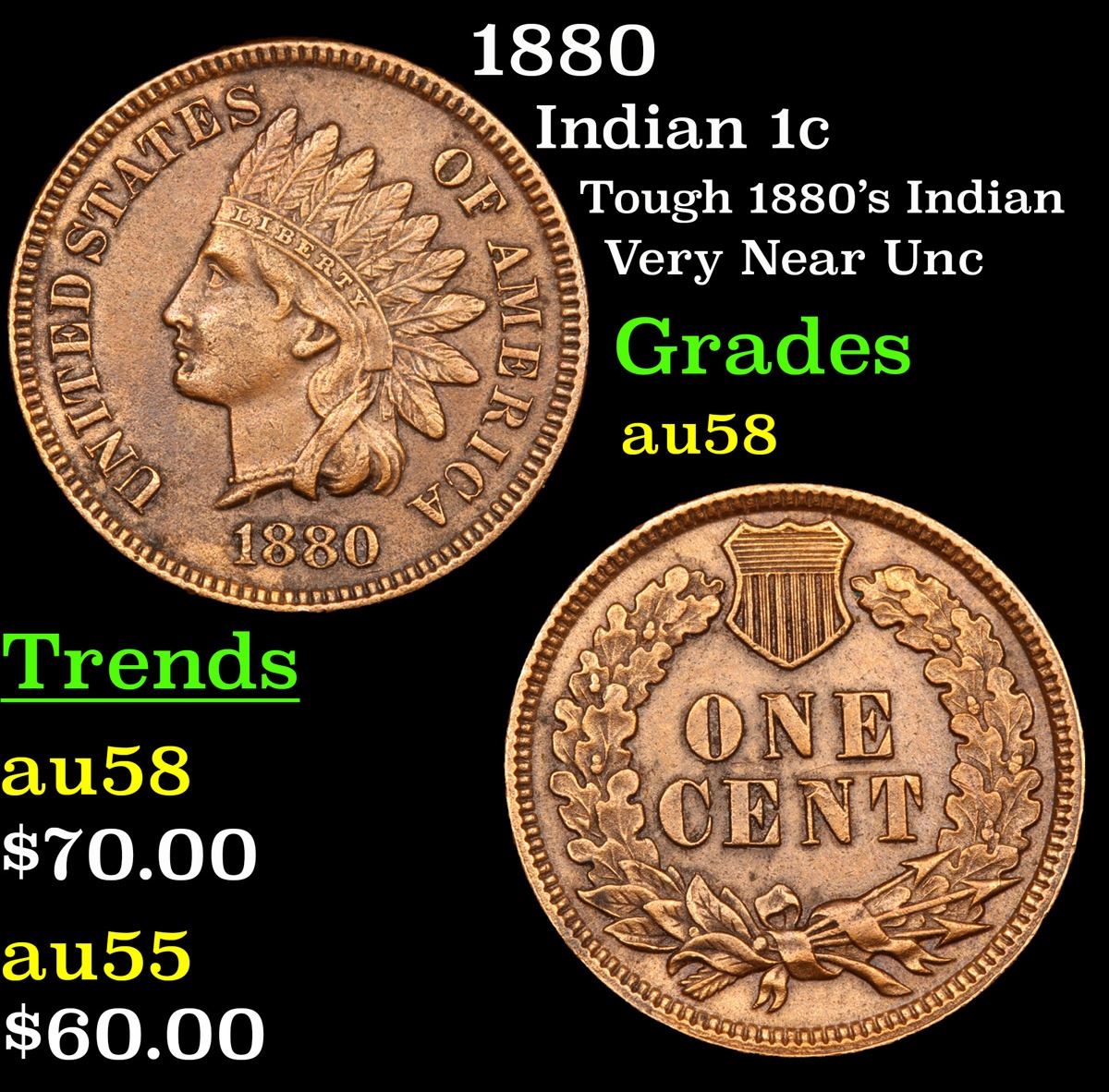 1880 Indian Cent 1c Grades Choice AU/BU Slider.