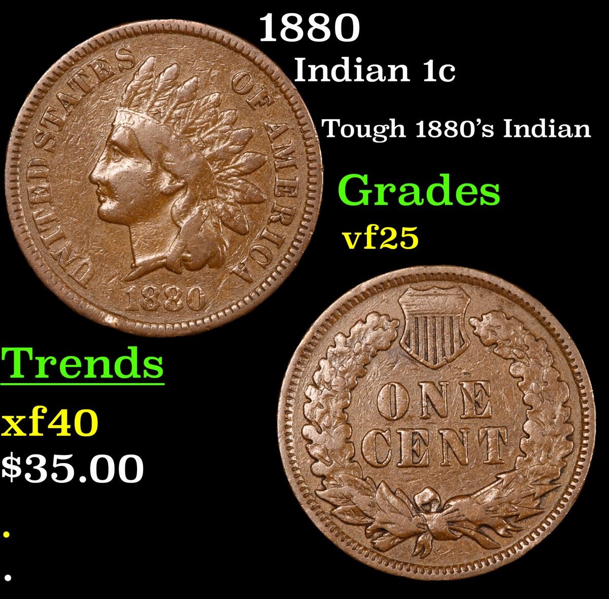 1880 Tough 1880's Indian . Indian Cent 1c Grades vf+.