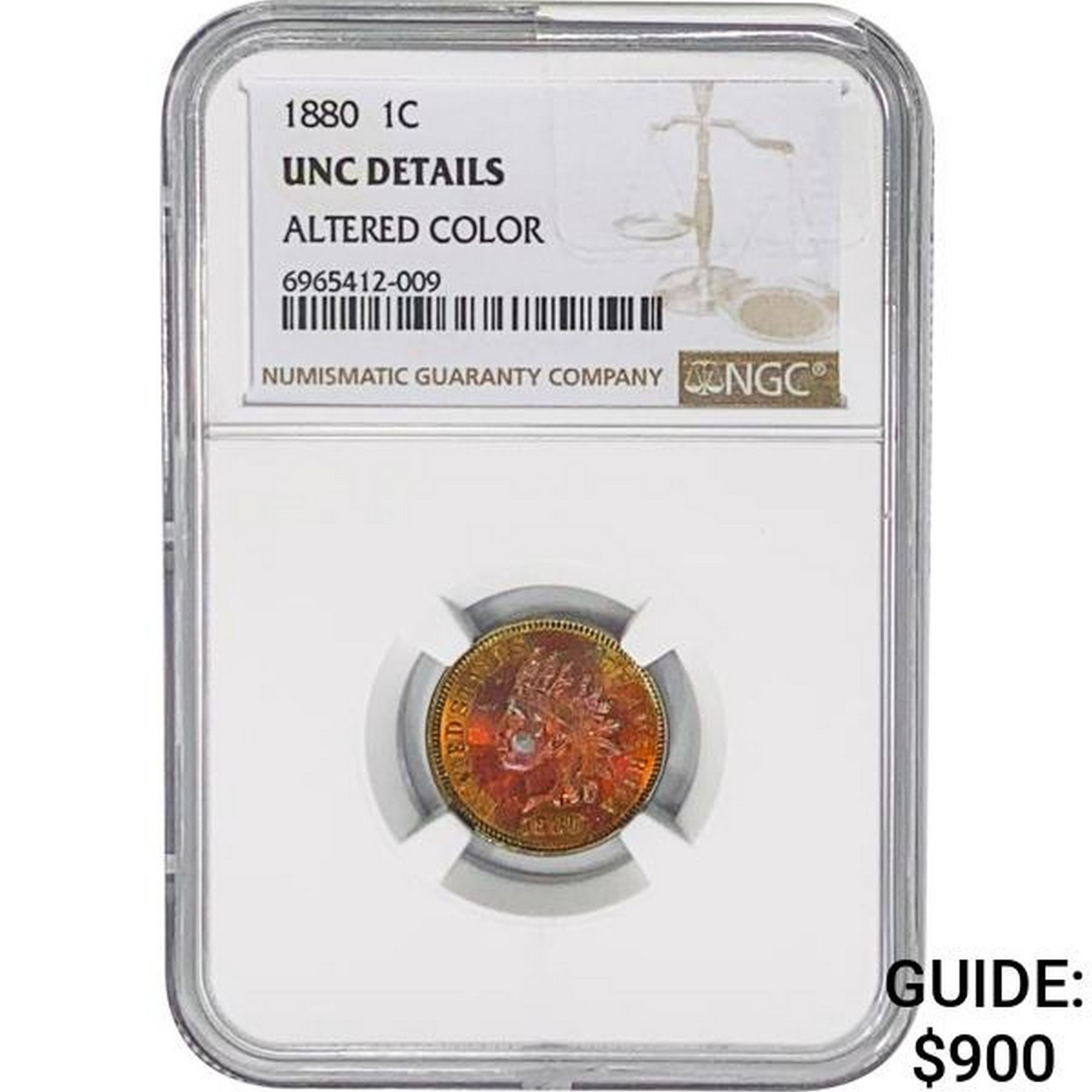 1880 Indian Head Cent NGC UNCDetails Altered Color