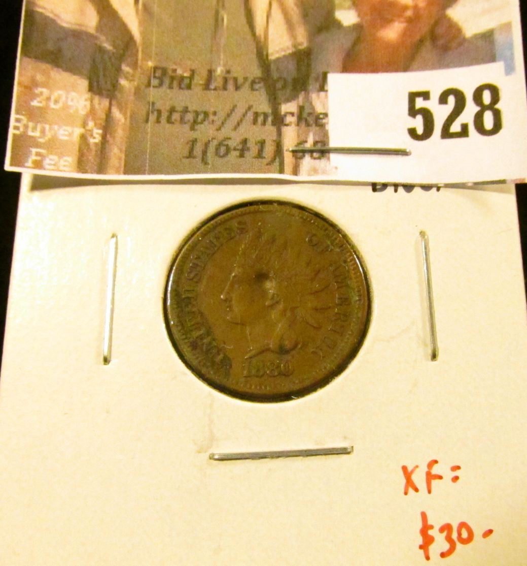 1880 Indian Head Cent, XF details, obverse divot, XF value $30