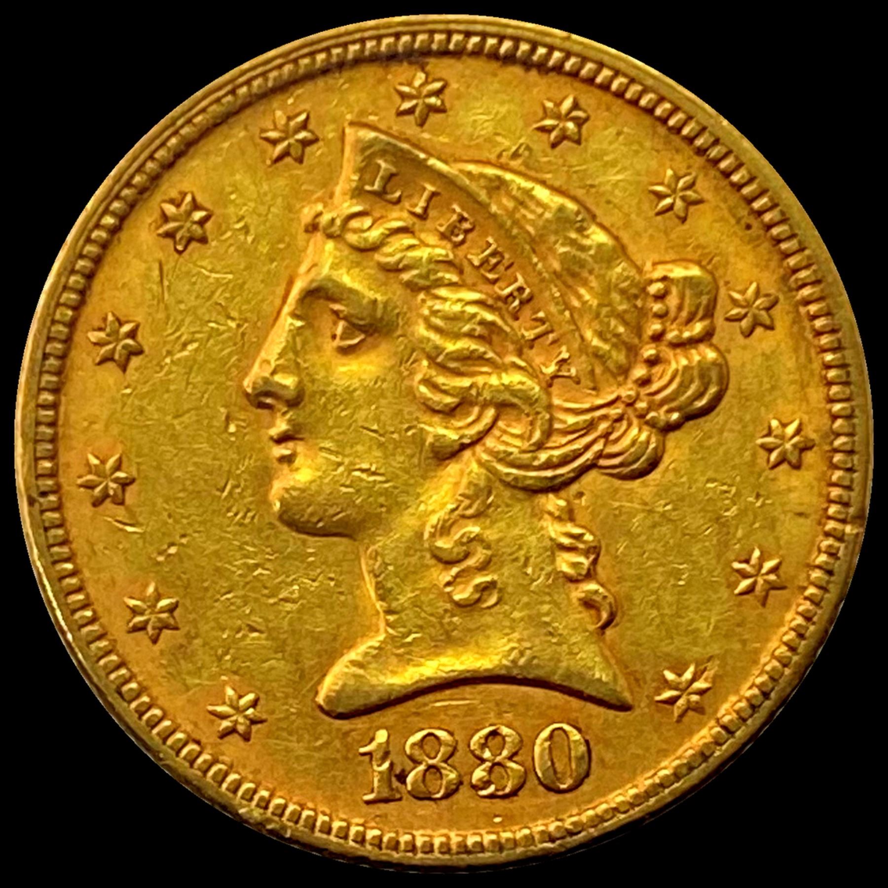 1880 Liberty Head Half Eagle $5 CLOSELY UNCIRCULATED