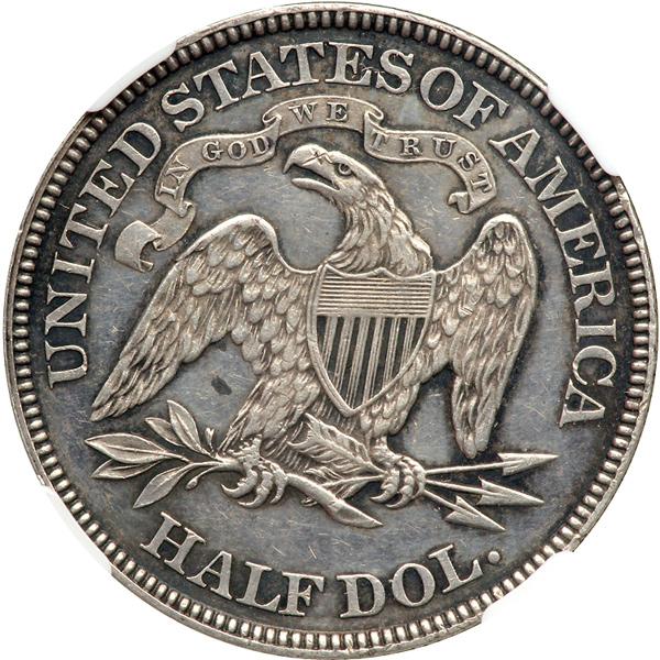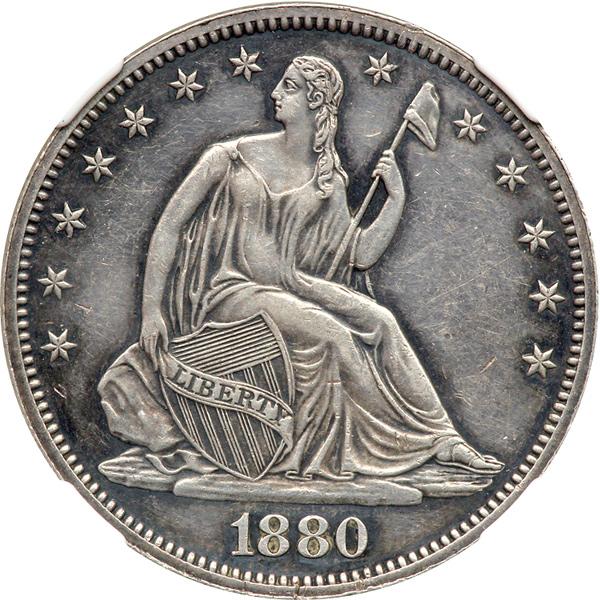 1880 Liberty Seated Half Dollar. NGC graded Proof 55. Lightly toned in the fields, deeper old-gray around devices.