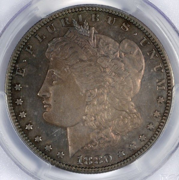 1880 MORGAN DOLLAR PCGS PROOF 65! SUPERB COLORS OF BLUES, PINKS, GOLD!