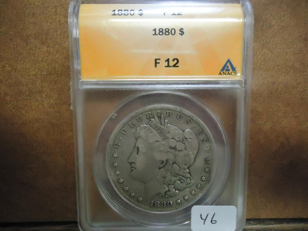 1880 MORGAN SILVER DOLLAR ANACS F12