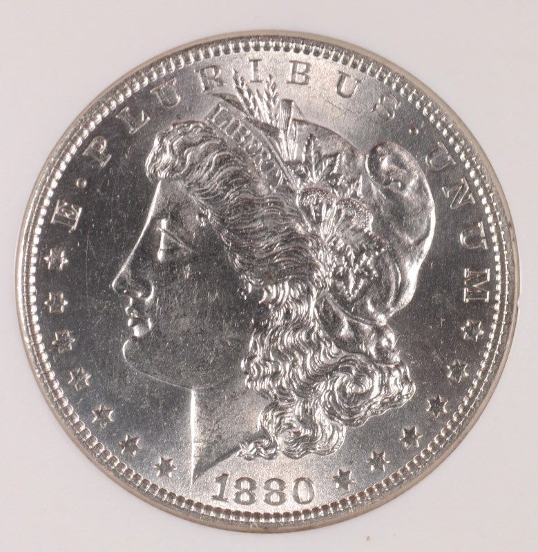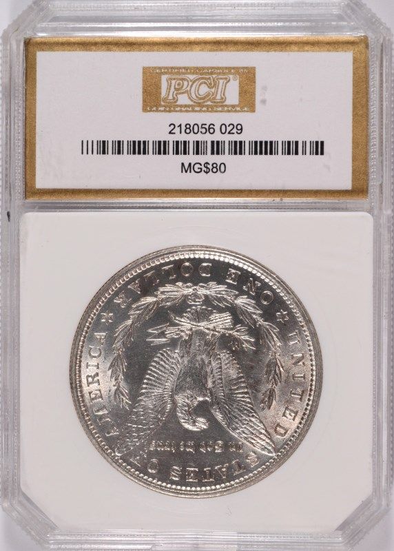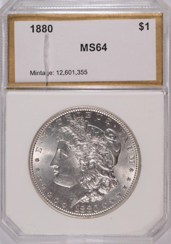 1880 MORGAN SILVER DOLLAR, PCI MS-64 BLAST WHITE! ( small crack in case )