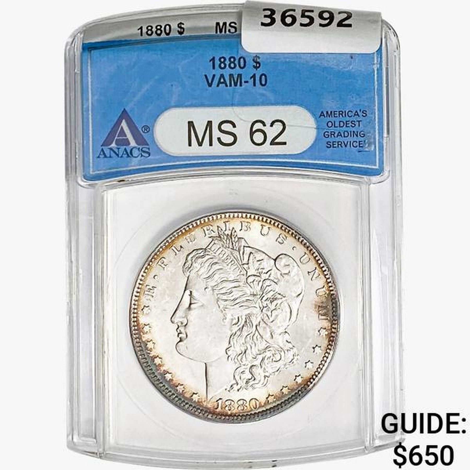 1880 Morgan Silver Dollar ANACS MS62 VAM-10
