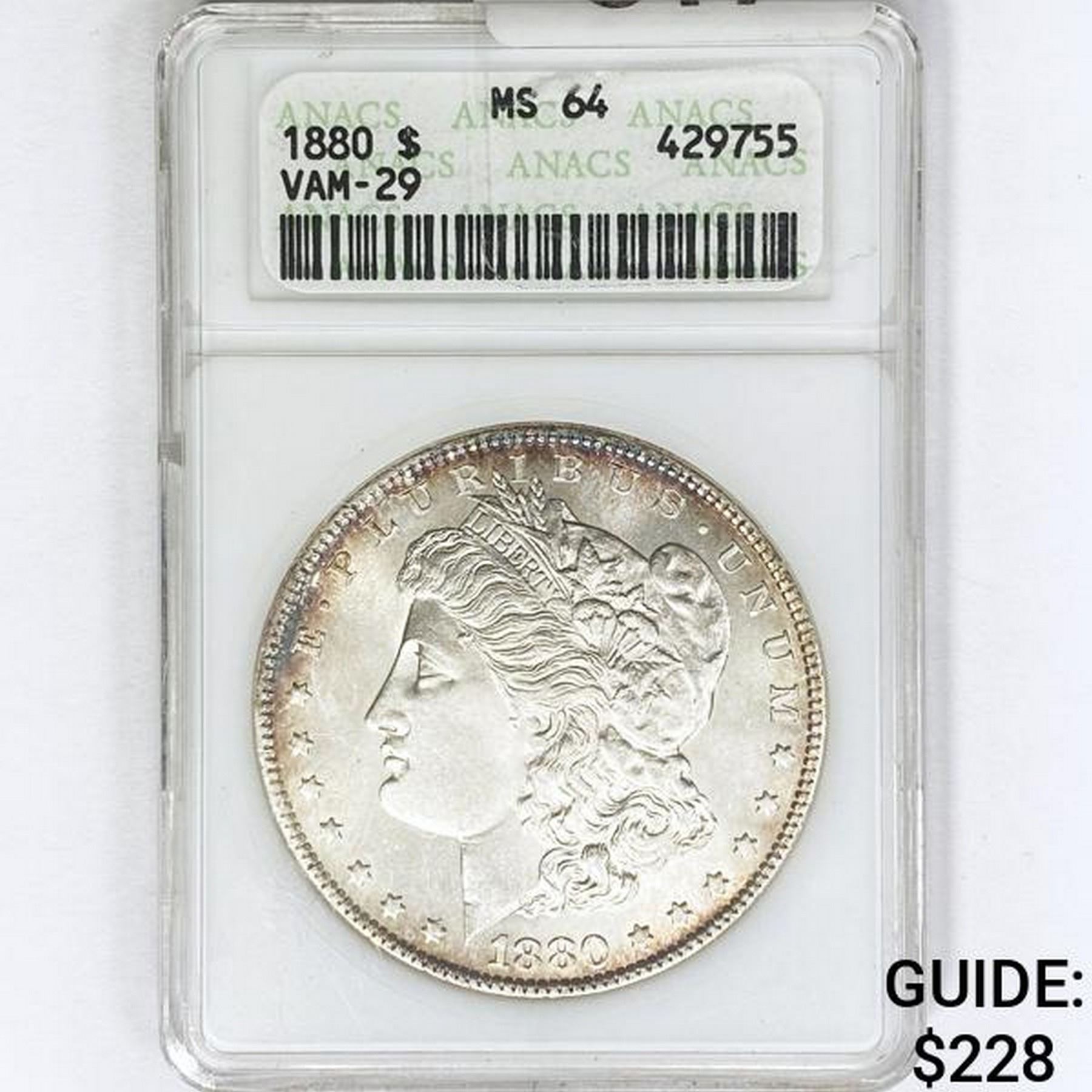 1880 Morgan Silver Dollar ANACS MS64 VAM-29