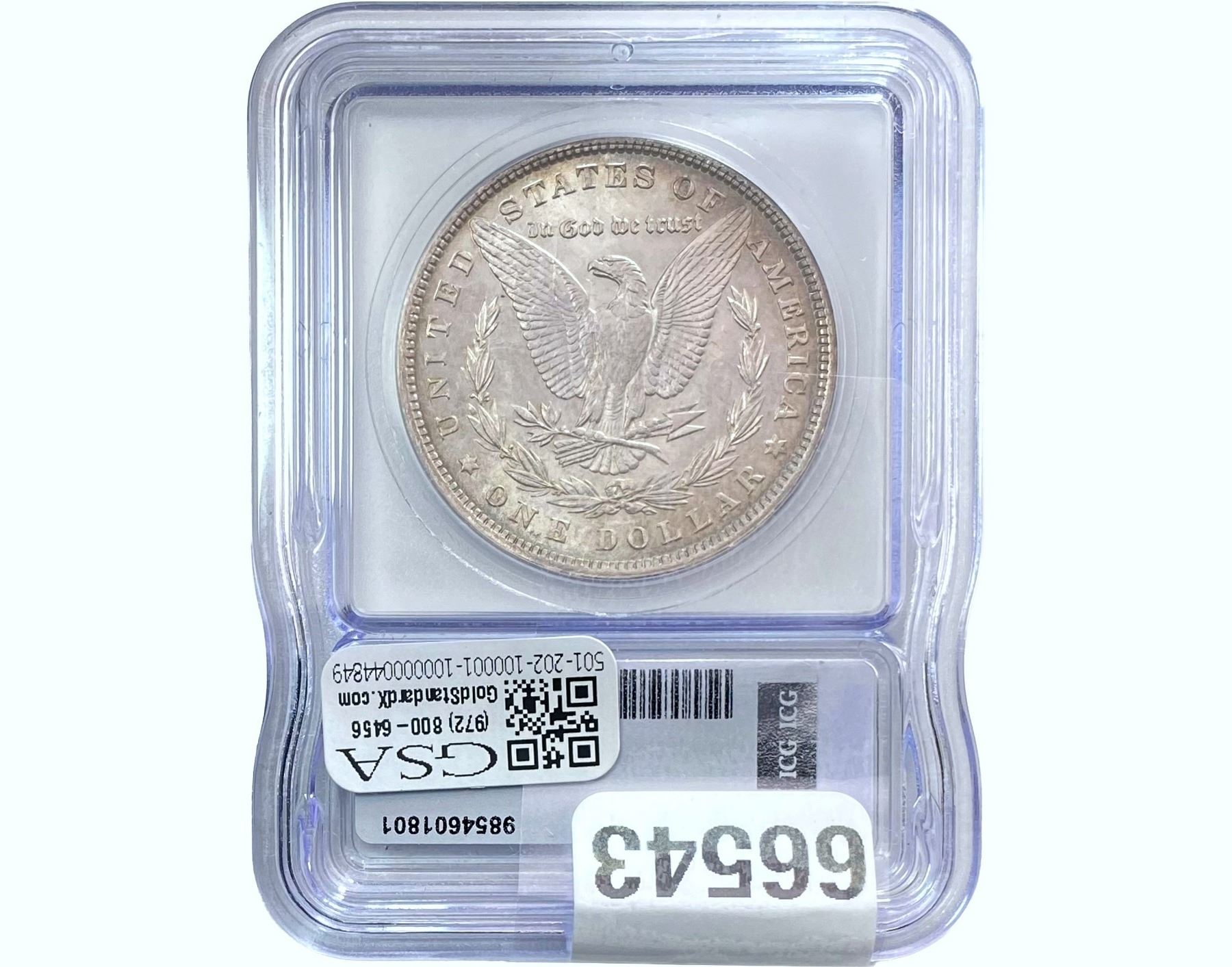 e. Coins sold referencing a third-party grading service are sold “AS IS” without any express or implied warranty, except for a guarantee by GSA that they are genuine. Removal or alteration of the holder, voids all of Bidder’s claims concerning that Product. Certain warranties may be available from the grading services and Bidders are referred to them for further details: Numismatic Guaranty Corporation (NGC), PO Box 4776, Sarasota, FL 34230, www.ngccoin.com/services/writtenguarantee.asp; Professional Coin Grading Services (PCGS), PO Box 9458, Newport Beach, CA 92658, www.pcgs.com/guarantee.html; ANACS, 6555 S. Kenton St., Ste. 303, Englewood, CO 80111; and Independent Coin Grading Co. (ICG), 7901 East Bellview, Ave., Suite 50, Englewood, CO 80111.