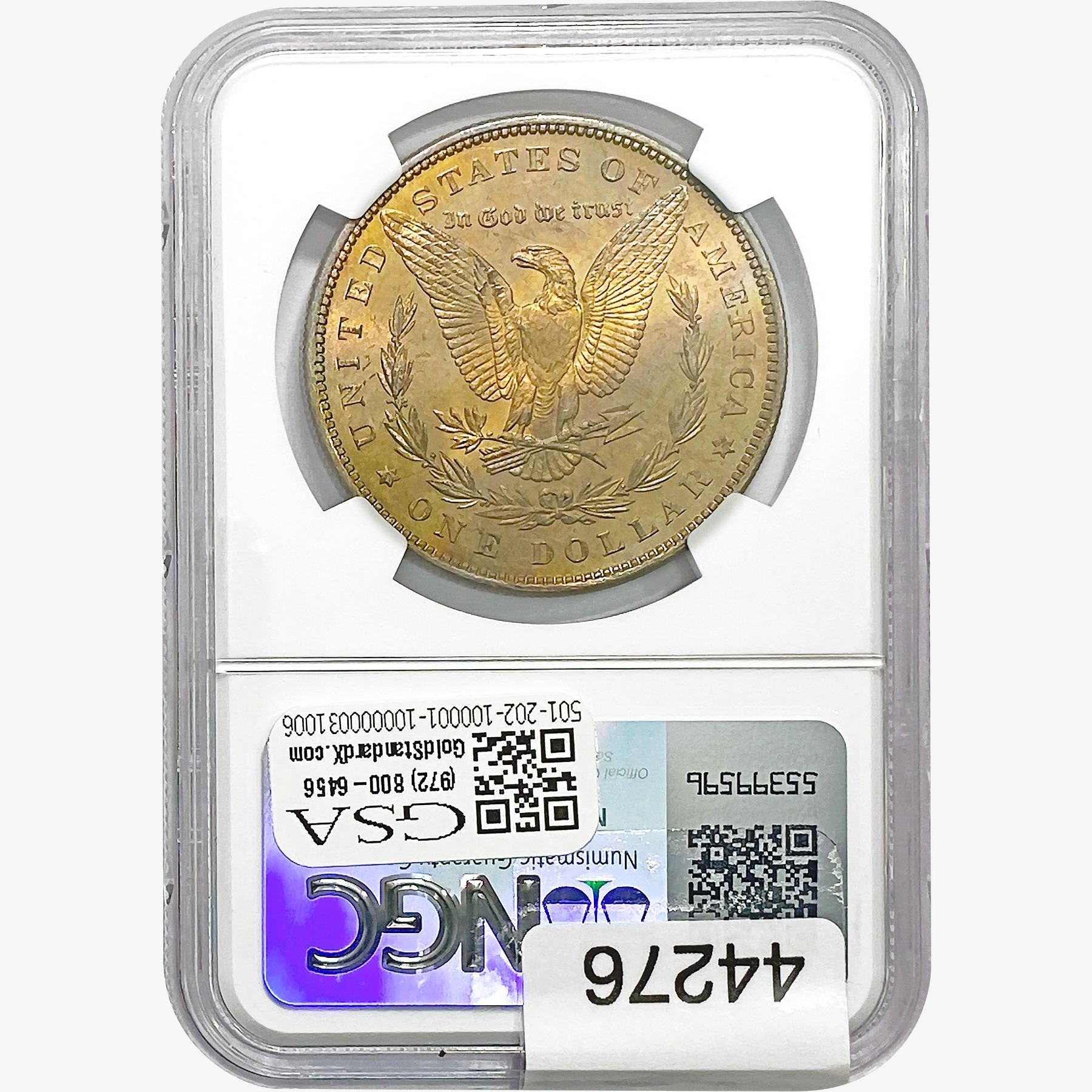 e. Coins sold referencing a third-party grading service are sold “AS IS” without any express or implied warranty, except for a guarantee by GSA that they are genuine. Removal or alteration of the holder, voids all of Bidder’s claims concerning that Product. Certain warranties may be available from the grading services and Bidders are referred to them for further details: Numismatic Guaranty Corporation (NGC), PO Box 4776, Sarasota, FL 34230, www.ngccoin.com/services/writtenguarantee.asp; Professional Coin Grading Services (PCGS), PO Box 9458, Newport Beach, CA 92658, www.pcgs.com/guarantee.html; ANACS, 6555 S. Kenton St., Ste. 303, Englewood, CO 80111; and Independent Coin Grading Co. (ICG), 7901 East Bellview, Ave., Suite 50, Englewood, CO 80111.
