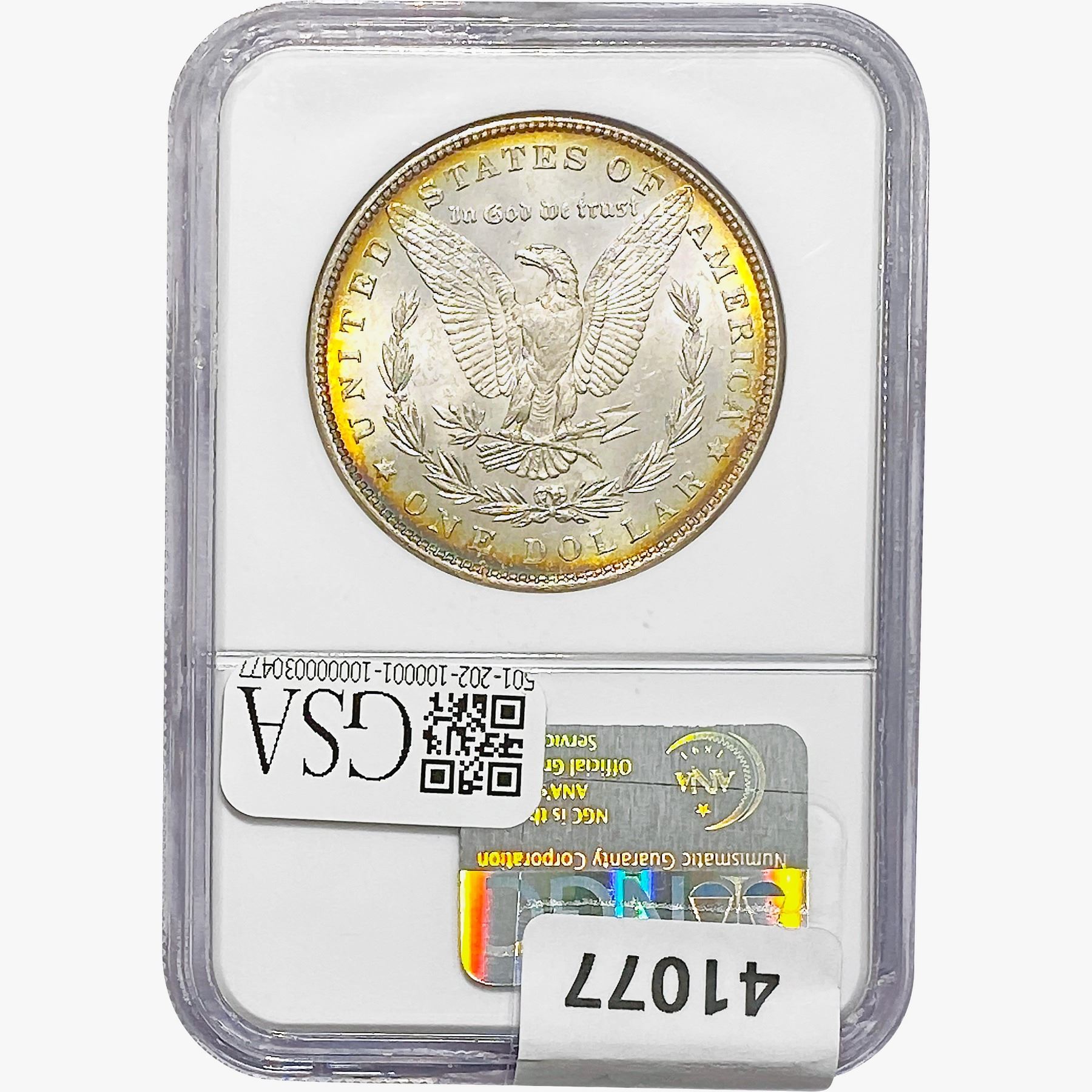 e. Coins sold referencing a third-party grading service are sold “AS IS” without any express or implied warranty, except for a guarantee by GSA that they are genuine. Removal or alteration of the holder, voids all of Bidder’s claims concerning that Product. Certain warranties may be available from the grading services and Bidders are referred to them for further details: Numismatic Guaranty Corporation (NGC), PO Box 4776, Sarasota, FL 34230, www.ngccoin.com/services/writtenguarantee.asp; Professional Coin Grading Services (PCGS), PO Box 9458, Newport Beach, CA 92658, www.pcgs.com/guarantee.html; ANACS, 6555 S. Kenton St., Ste. 303, Englewood, CO 80111; and Independent Coin Grading Co. (ICG), 7901 East Bellview, Ave., Suite 50, Englewood, CO 80111.