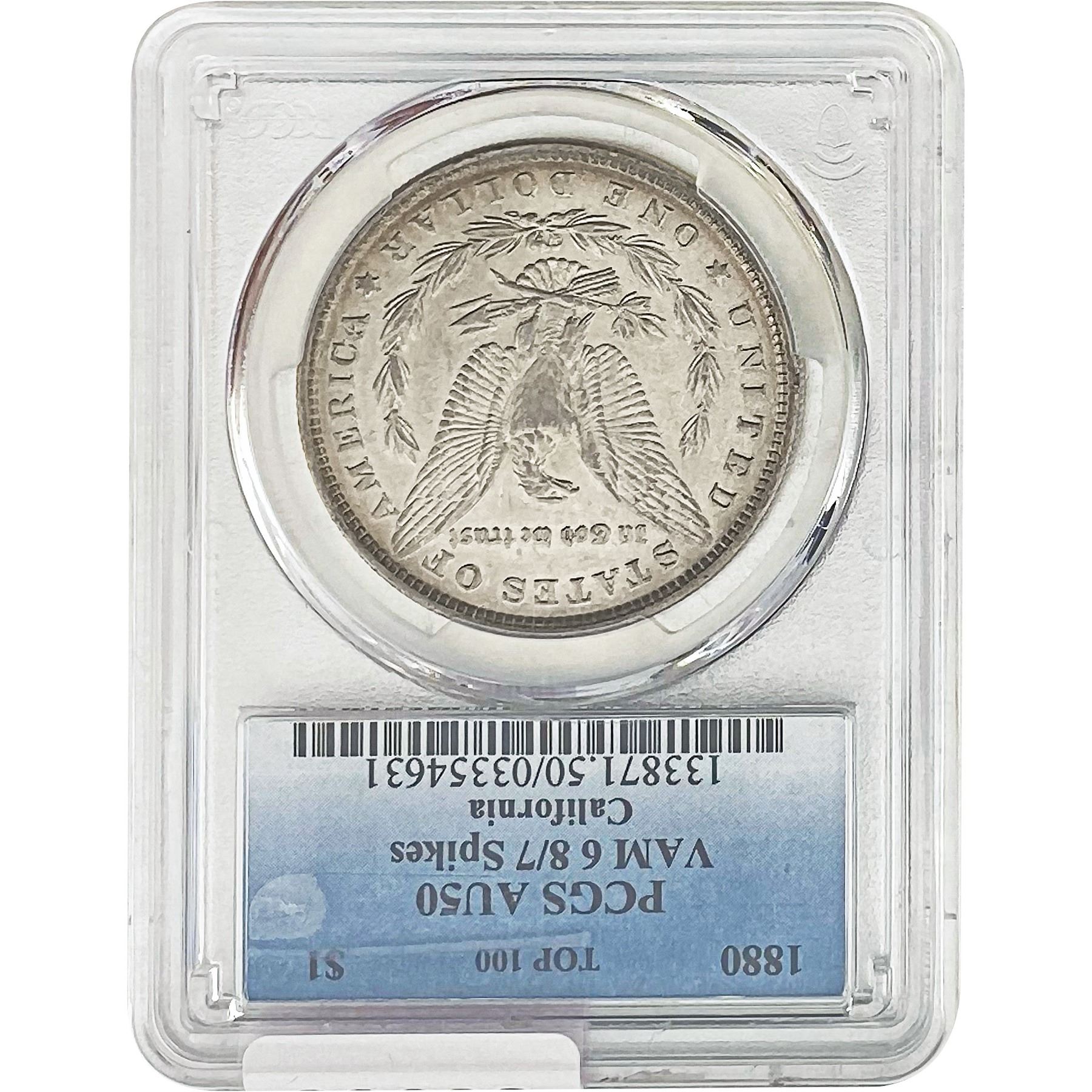 1880 Morgan Silver Dollar PCGS AU50 VAM 6 8/7Spike