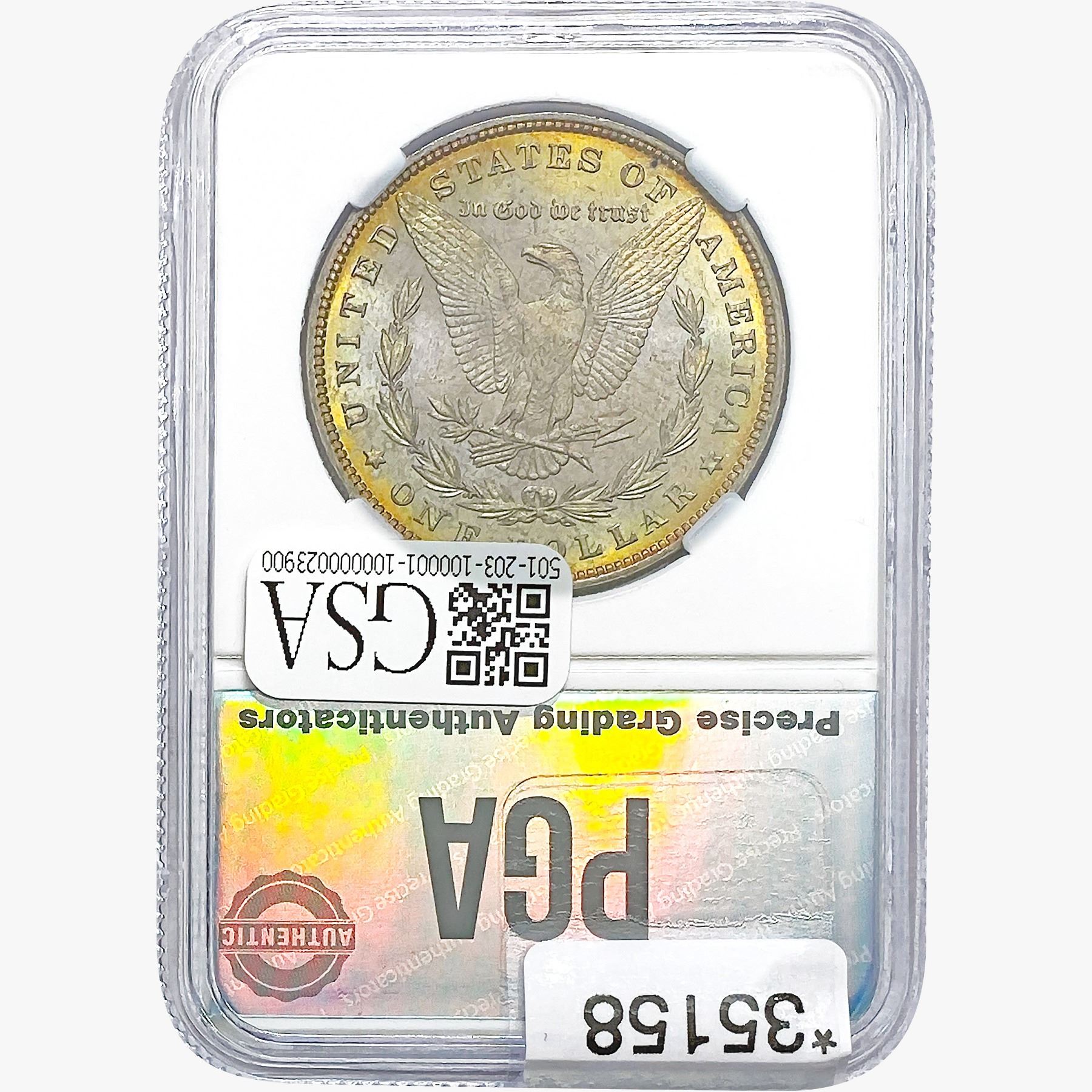 COINS AND CURRENCY LISTED IN GSA’S CATALOG AS GRADED AND ENCAPSULATED BY PCGS, NGC, ANACS, ICG, PCGS CURRENCY, PMG, PCGS BANKNOTE GRADING, CMC OR ANY OTHER THIRD-PARTY GRADING SERVICE ARE LIKEWISE SOLD “AS-IS” EXCEPT AS EXPRESSLY SET FORTH HEREIN. ALL THIRD-PARTY GRADING SERVICE GUARANTEES, INCLUDING AUTHENTICITY, ARE THE SOLE RESPONSIBILITY OF THE THIRD-PARTY GRADING SERVICE AND NOT WARRANTIES OR GUARANTEES OF GSA. BIDDERS SHOULD CONTACT THESE THIRD-PARTY GRADING SERVICES DIRECTLY WITH RESPECT TO ANY CLAIMS OR QUESTIONS THEY MAY HAVE CONCERNING THEIR GUARANTEES AND WARRANTIES. BIDDERS ACKNOWLEDGE AND AGREE THAT AUCTIONEER IS NOT BOUND BY OR LIABLE FOR ANY OPINION OR CERTIFICATION BY ANY THIRD-PARTY GRADING SERVICE. REMOVAL OF A PRODUCT FROM ITS PROTECTIVE CASING OR HOLDER OR ALTERATION OF ANY COIN HOLDER WAIVES ALL RIGHTS CONCERNING THE PRODUCT CONTAINED THEREIN.