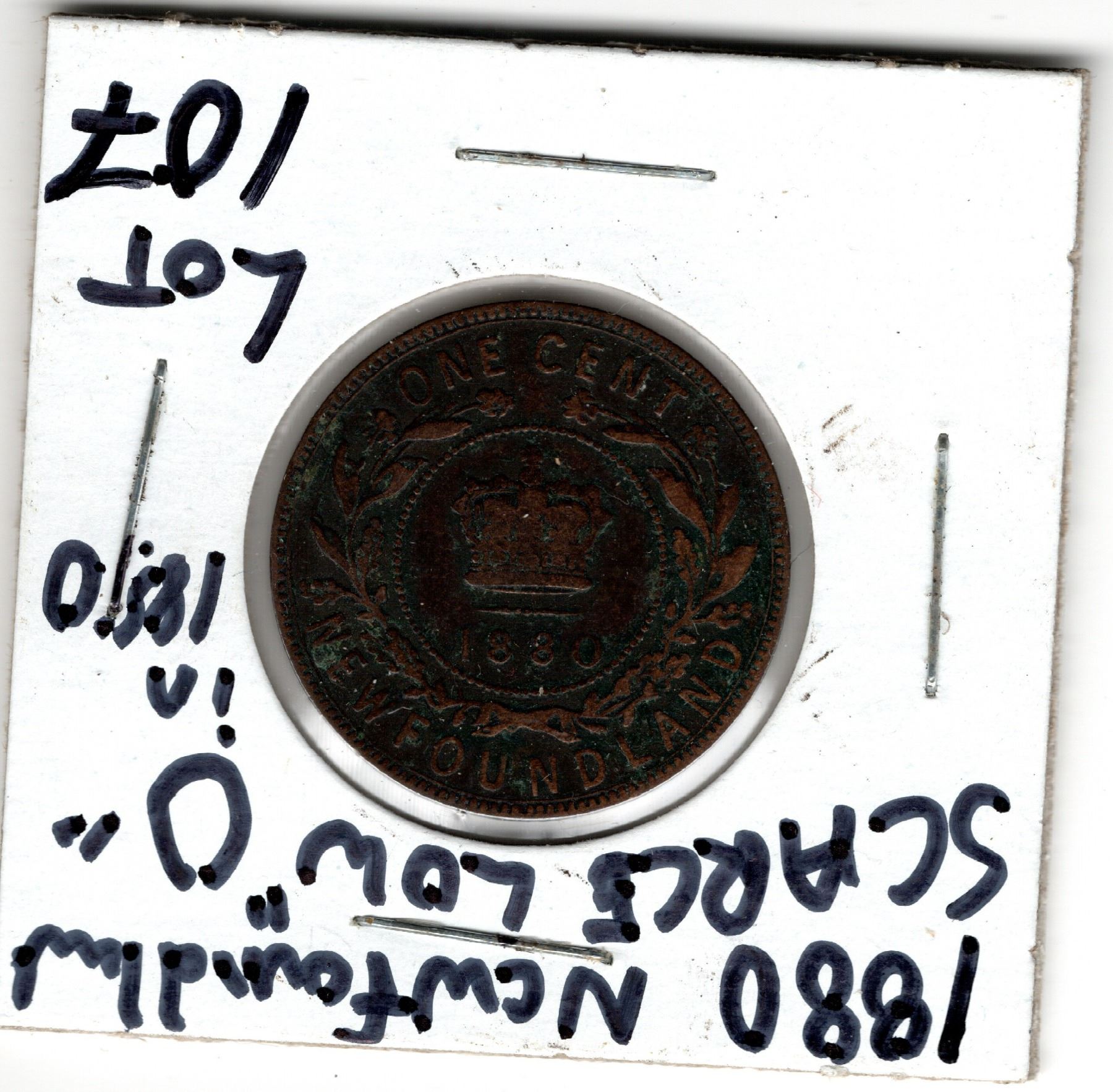 1880 NEWFOUNDLAND LARGE CENT SCARCE LOW 0 IN DATE