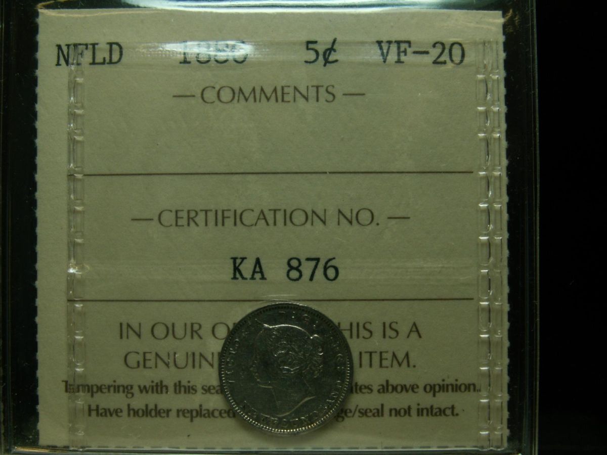 1880 NFLD 5¢ ICCS VF20