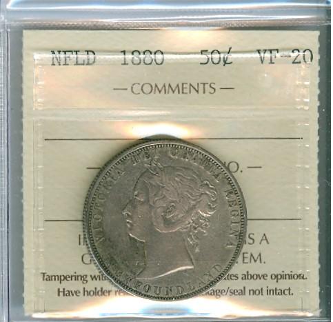 1880 Nfld 50¢ ICCS VF20.Lightly toned.