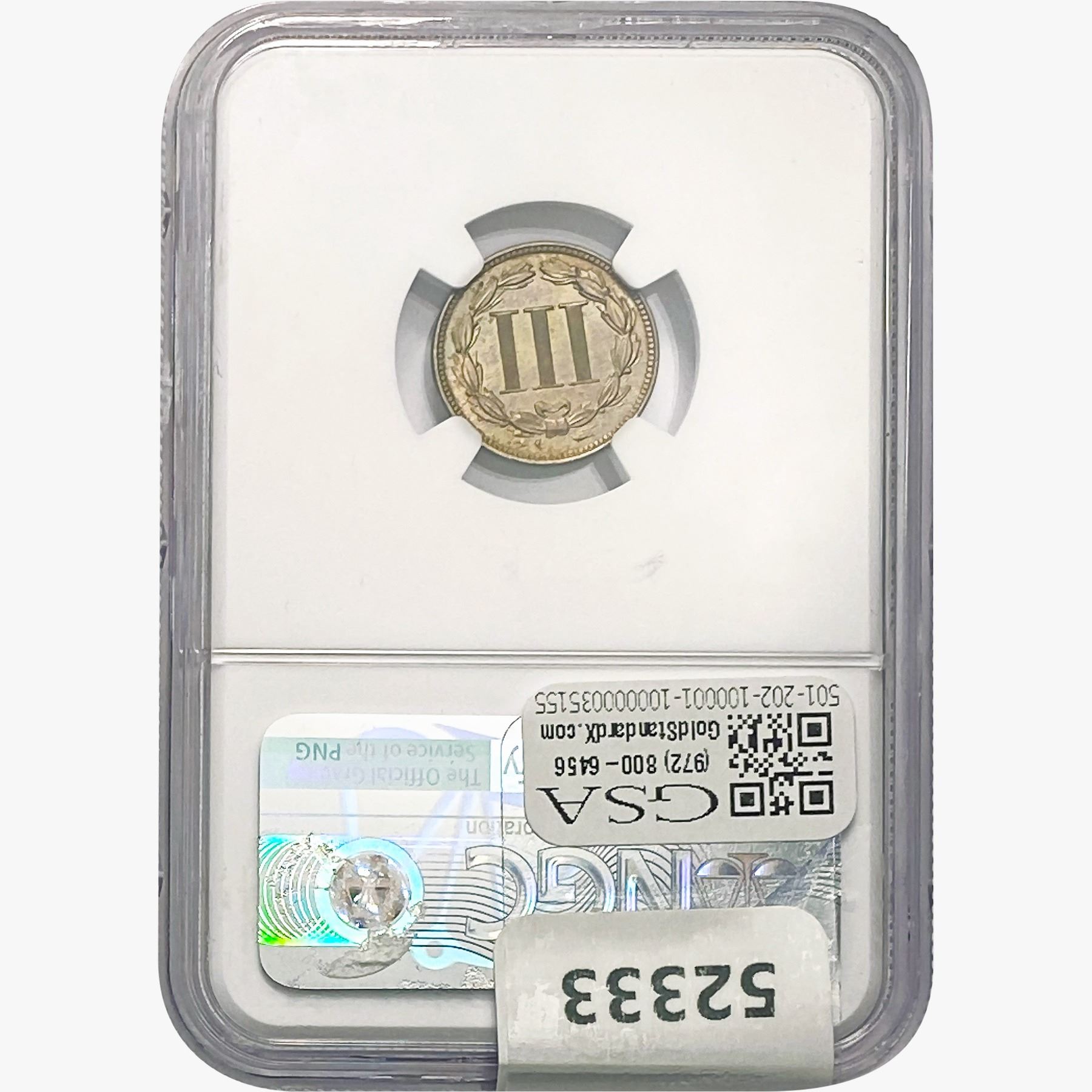 e. Coins sold referencing a third-party grading service are sold “AS IS” without any express or implied warranty, except for a guarantee by GSA that they are genuine. Removal or alteration of the holder, voids all of Bidder’s claims concerning that Product. Certain warranties may be available from the grading services and Bidders are referred to them for further details: Numismatic Guaranty Corporation (NGC), PO Box 4776, Sarasota, FL 34230, www.ngccoin.com/services/writtenguarantee.asp; Professional Coin Grading Services (PCGS), PO Box 9458, Newport Beach, CA 92658, www.pcgs.com/guarantee.html; ANACS, 6555 S. Kenton St., Ste. 303, Englewood, CO 80111; and Independent Coin Grading Co. (ICG), 7901 East Bellview, Ave., Suite 50, Englewood, CO 80111.