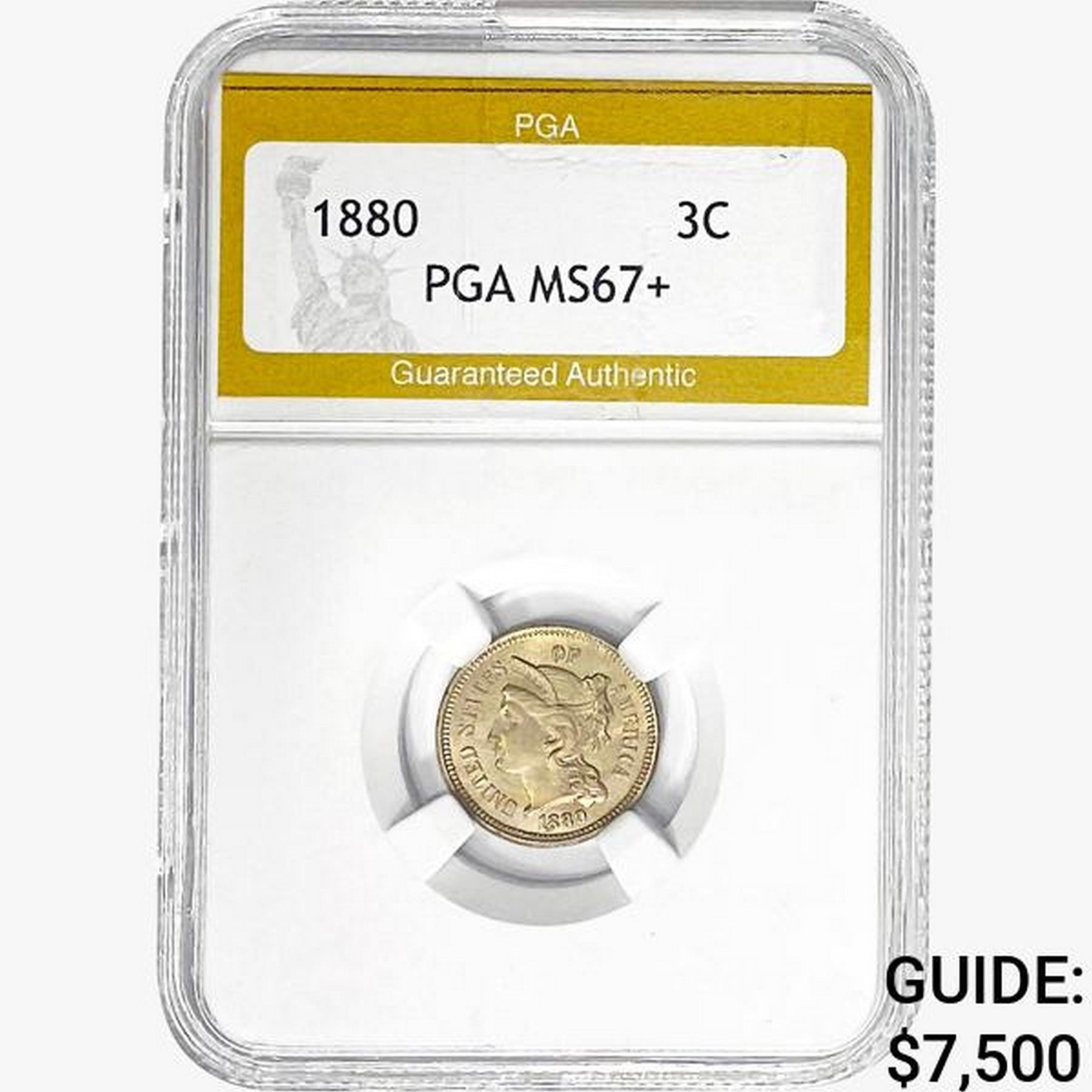 1880 Nickel Three Cent PGA MS67+