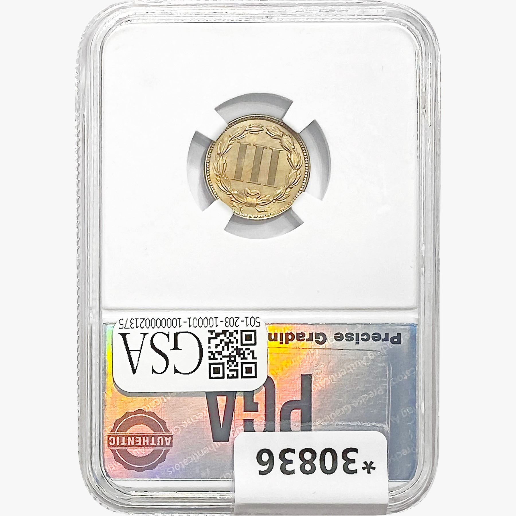 COINS AND CURRENCY LISTED IN GSA’S CATALOG AS GRADED AND ENCAPSULATED BY PCGS, NGC, ANACS, ICG, PCGS CURRENCY, PMG, PCGS BANKNOTE GRADING, CMC OR ANY OTHER THIRD-PARTY GRADING SERVICE ARE LIKEWISE SOLD “AS-IS” EXCEPT AS EXPRESSLY SET FORTH HEREIN. ALL THIRD-PARTY GRADING SERVICE GUARANTEES, INCLUDING AUTHENTICITY, ARE THE SOLE RESPONSIBILITY OF THE THIRD-PARTY GRADING SERVICE AND NOT WARRANTIES OR GUARANTEES OF GSA. BIDDERS SHOULD CONTACT THESE THIRD-PARTY GRADING SERVICES DIRECTLY WITH RESPECT TO ANY CLAIMS OR QUESTIONS THEY MAY HAVE CONCERNING THEIR GUARANTEES AND WARRANTIES. BIDDERS ACKNOWLEDGE AND AGREE THAT AUCTIONEER IS NOT BOUND BY OR LIABLE FOR ANY OPINION OR CERTIFICATION BY ANY THIRD-PARTY GRADING SERVICE. REMOVAL OF A PRODUCT FROM ITS PROTECTIVE CASING OR HOLDER OR ALTERATION OF ANY COIN HOLDER WAIVES ALL RIGHTS CONCERNING THE PRODUCT CONTAINED THEREIN.