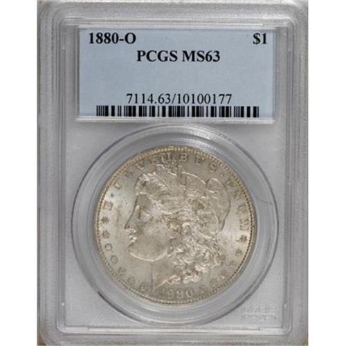 <B>1880-O $1 MS63 PCGS.</B></I> PCGS Population (1749/941). NGC Census: (1478/832). Mintage: 5,305,000. Numismedia Wsl. Price for NGC/PCGS coin in MS63: $300. (#7114)<BR><BR><b>Shipping:</b> Coins & Currency (<a target="_blank" href="http://www.heritageauctions.com/common/shipping.php">view shipping information</a>)