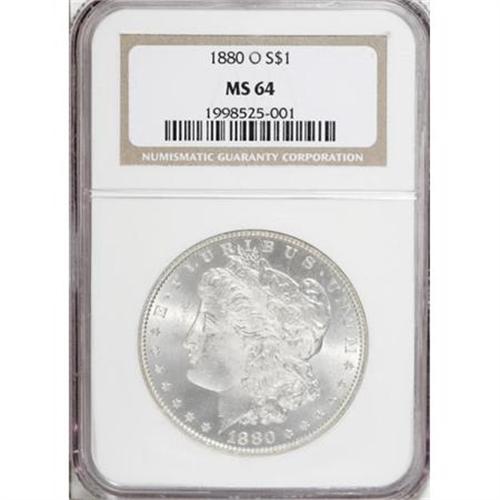 <B>1880-O $1 MS64 NGC.</B></I> Micro O. A beautiful and splendidly lustrous near-Gem with remarkably smooth fields for the MS64 grade. Even the cheek and neck display minimal contact. Virtually untoned and precisely struck.<BR><BR><B>Coin Engraver:</B> George T. Morgan<BR><BR><b>Shipping:</b> Coins & Currency (<a target="_blank" href="http://www.heritageauctions.com/common/shipping.php">view shipping information</a>)