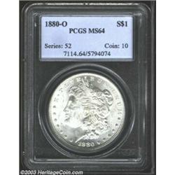 1880-O $1 MS64 PCGS. The 1880-O is a major condition rarity in the Morgan series. An MS64 example...