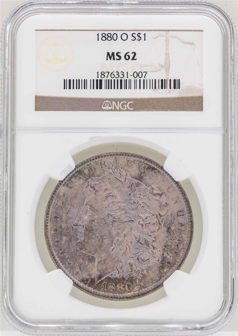 One 1880-O $1 Morgan Silver Dollar Coin NGC MS62 Amazing Toning. NGC Certified.