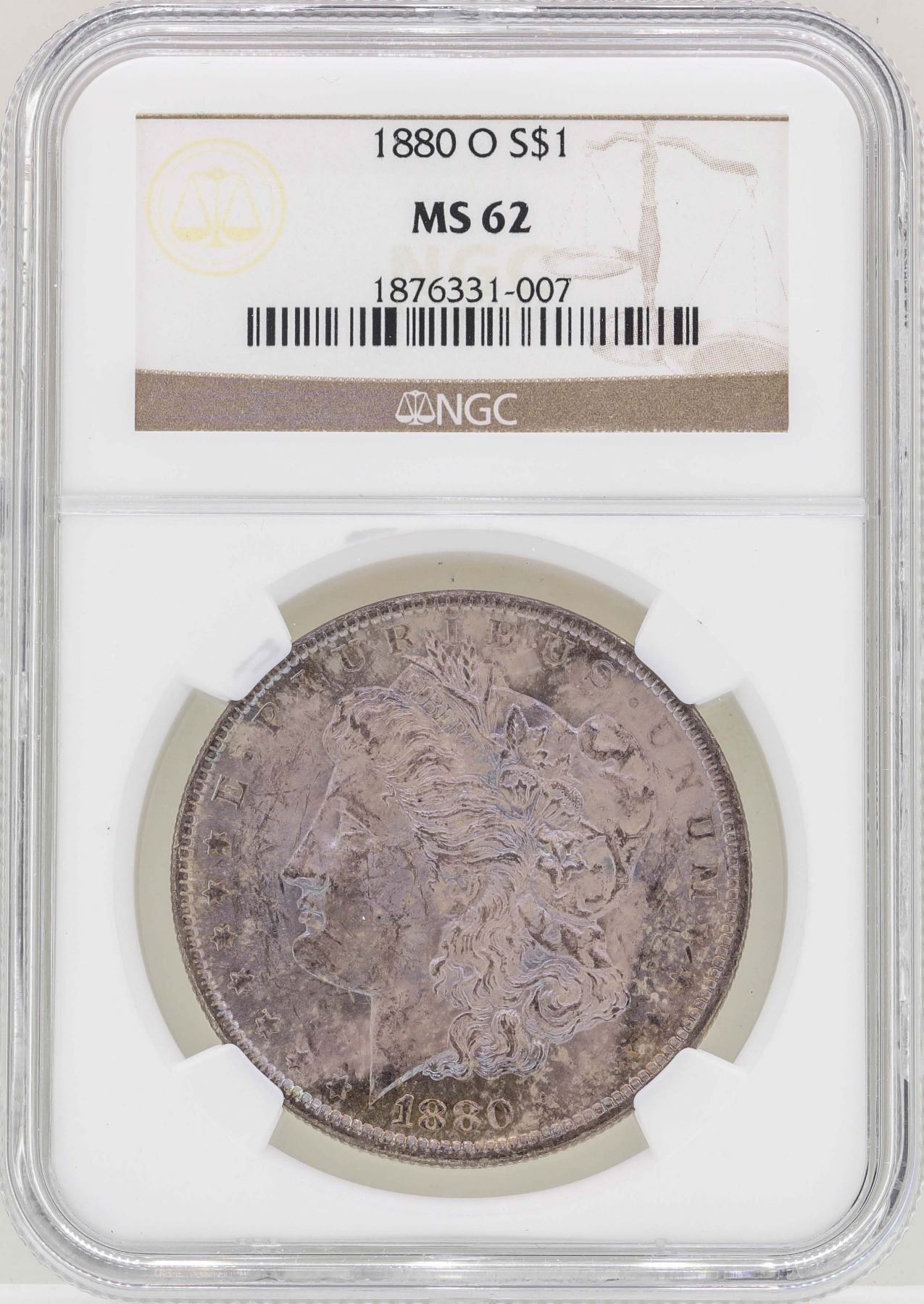 One 1880-O $1 Morgan Silver Dollar Coin NGC MS62 Amazing Toning.