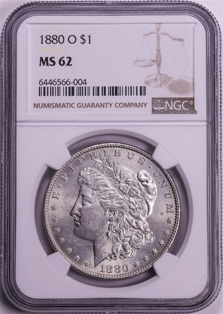 One 1880-O $1 Morgan Silver Dollar Coin NGC MS62. NGC Certified.