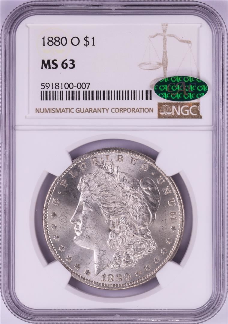 One 1880-O $1 Morgan Silver Dollar Coin NGC MS63 CAC. NGC Certified.
