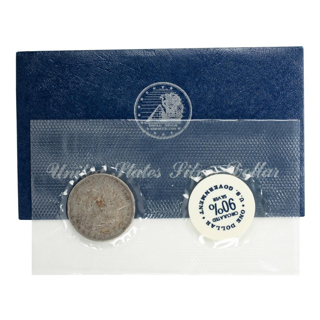 One 1880-O $1 Morgan Silver Dollar Coin with GSA Soft Pack and Envelope.